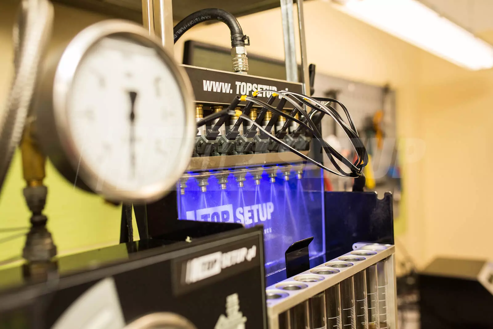 Jeśli wtryskiwacze okazują się sprawne pod względem elektronicznym, kolejnym etapem diagnostyki jest poddanie ich testom pod kątem szczelności, jakości rozpylania oraz wydajności. Przy pomocy stołu probierczego oraz płynów kalibracyjnych sprawdzamy wydajność statyczną przy 100% wypełnieniu. Testujemy także dawkowanie dynamiczne podczas symulacji warunków przyśpieszania oraz hamowania silnikiem przy różnych współczynnikach wypełnienia. Wszystkie parametry zarejestrowane podczas diagnostyki, zostają naniesione na kartę informacyjną.